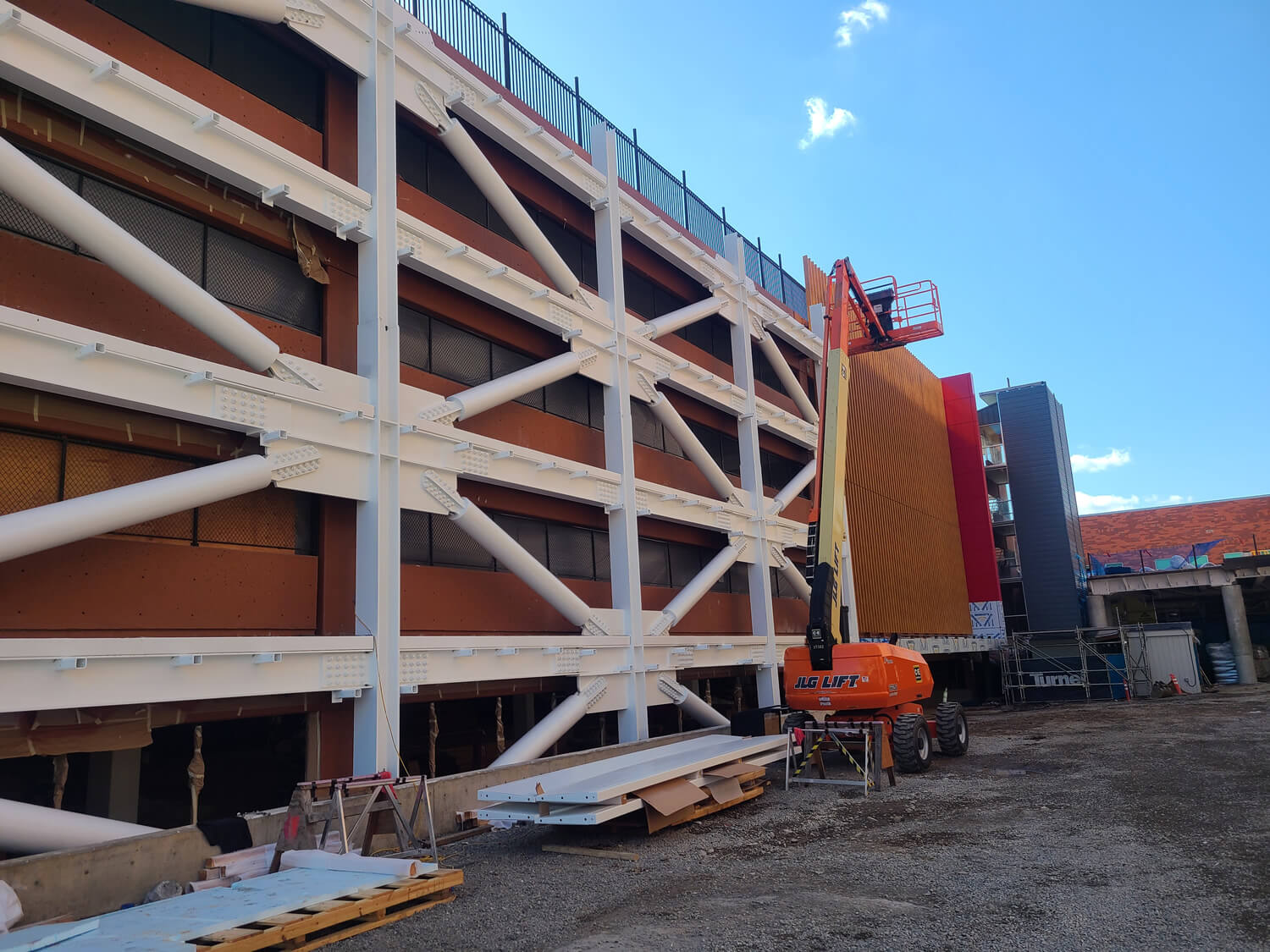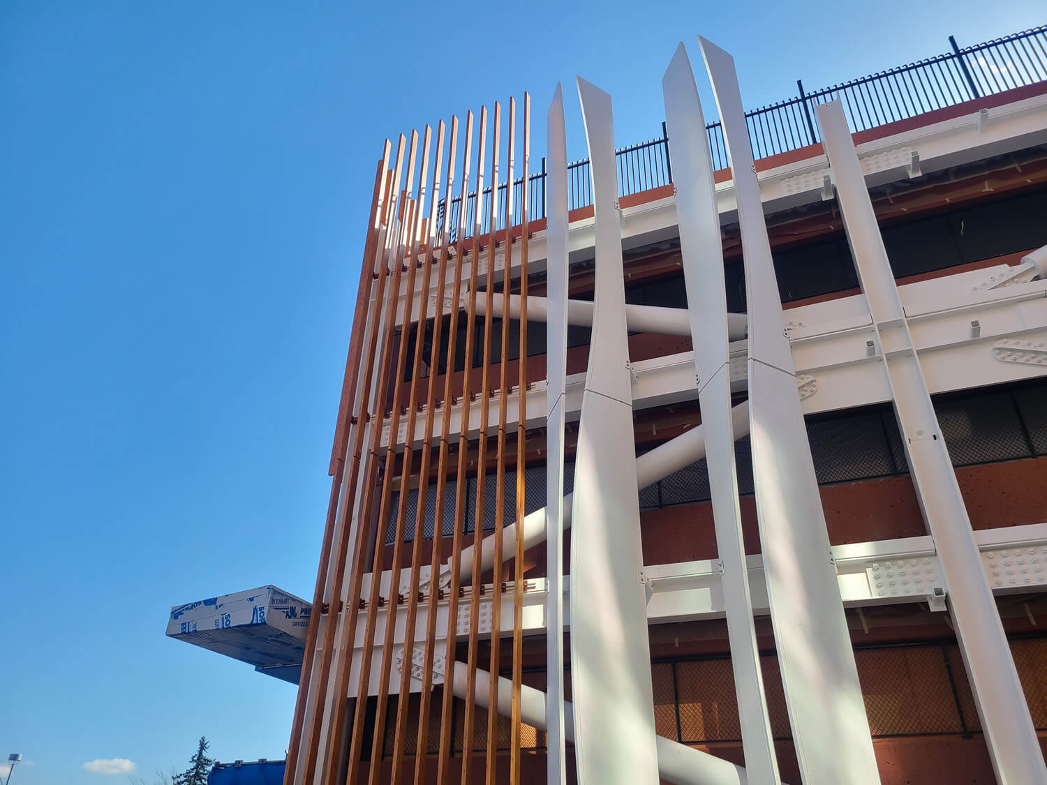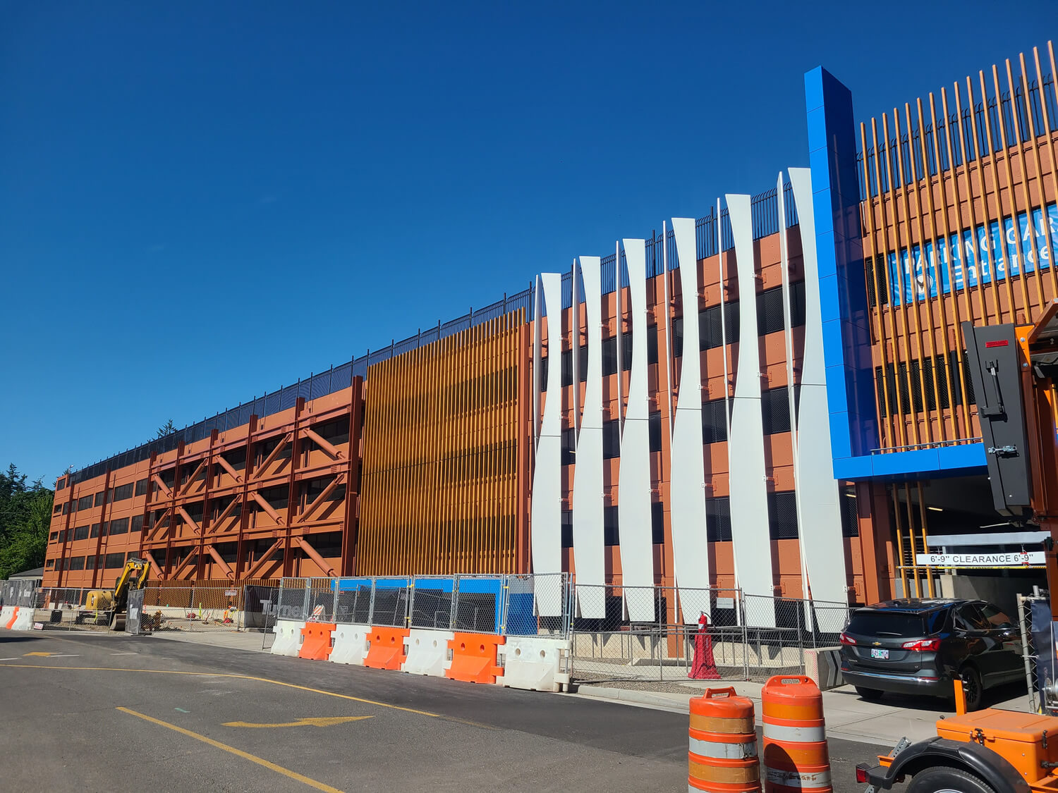 As part of the garage renovation, high-performance coatings were applied to the distinctive sail-fin elements adorning the façade. This process was conducted at a local county fairground facility, demonstrating our commitment to efficiency and quality in delivering a standout result for Salem Health.