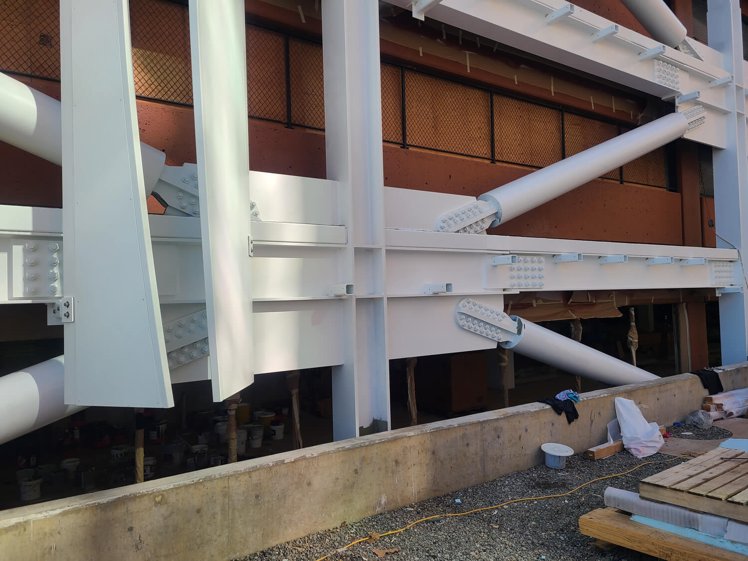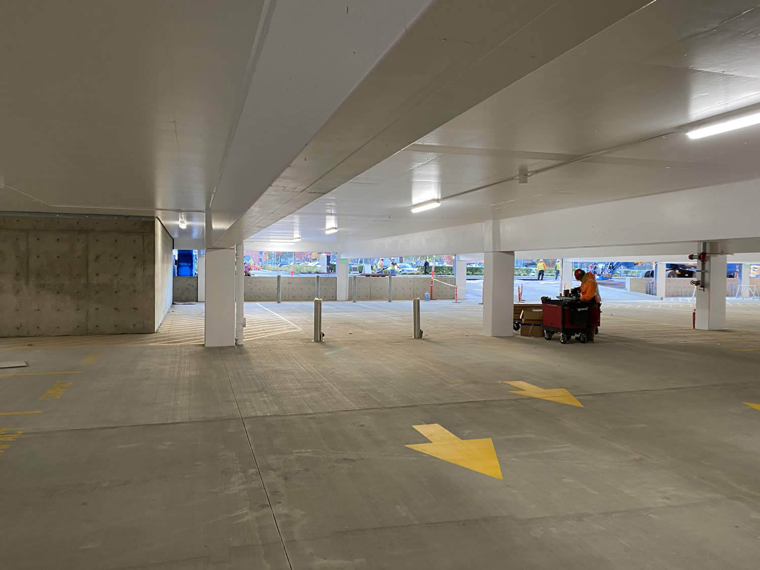 This milestone project, the largest in our history, involved a crew of up to 28 painters at its peak. The scope included a full repaint of the seismically retrofitted parking garage using durable Fluoropolymer coatings from Tnemec, ensuring long-lasting protection and aesthetics. Inside, we painted comprehensively for the emergency department, main lobby, patient rooms, administrative offices, back-of-house areas, and stairwells.